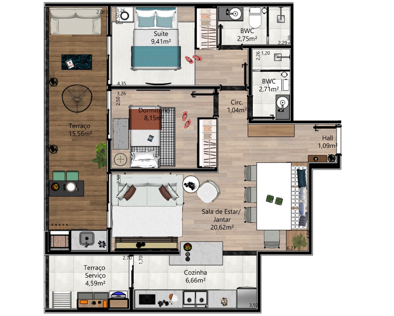 81 m² 2 Quartos 2 Banheiros 1 Vagas 2024 Ano de construção